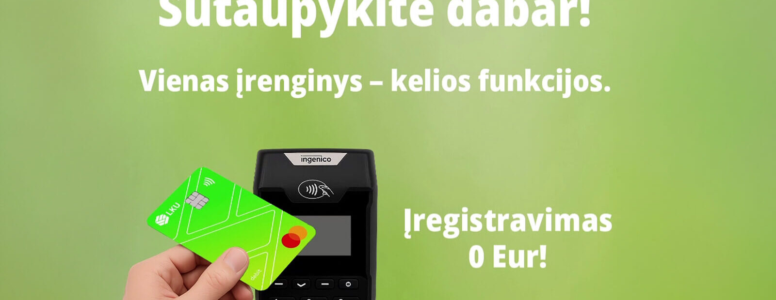Iki gegužės 31 d. esami ir nauji LKU grupės nariai gali išsinuomoti kortelių skaitytuvą su kasos aparato funkcija be papildomų mokesčių.