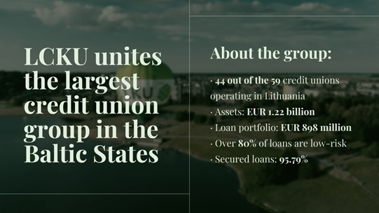 LCCU unites 44 of the 59 credit unions operating in Lithuania, with over 100 customer service locations across the country. The group’s assets amount to EUR 1.22 billion, and its loan portfolio totals EUR 898 million. LCCU plays a key role in organising, coordinating, and overseeing the majority of the credit union sector.